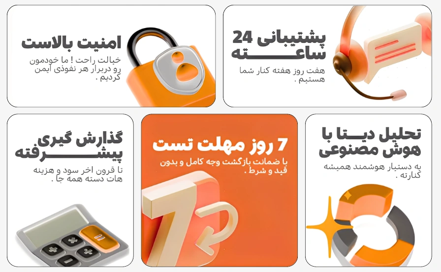 اطلاعات شما در سرورهای امن با استانداردهای بینالمللی ذخیره میشوند، ارتباط رمزنگاریشده است، نسخه پشتیبان پیمایشی انجام میشود و دسترسیها قابل تنظیماند تا فقط کاربران مجاز بتوانند حسابها را مشاهده یا دستکاری کنند.